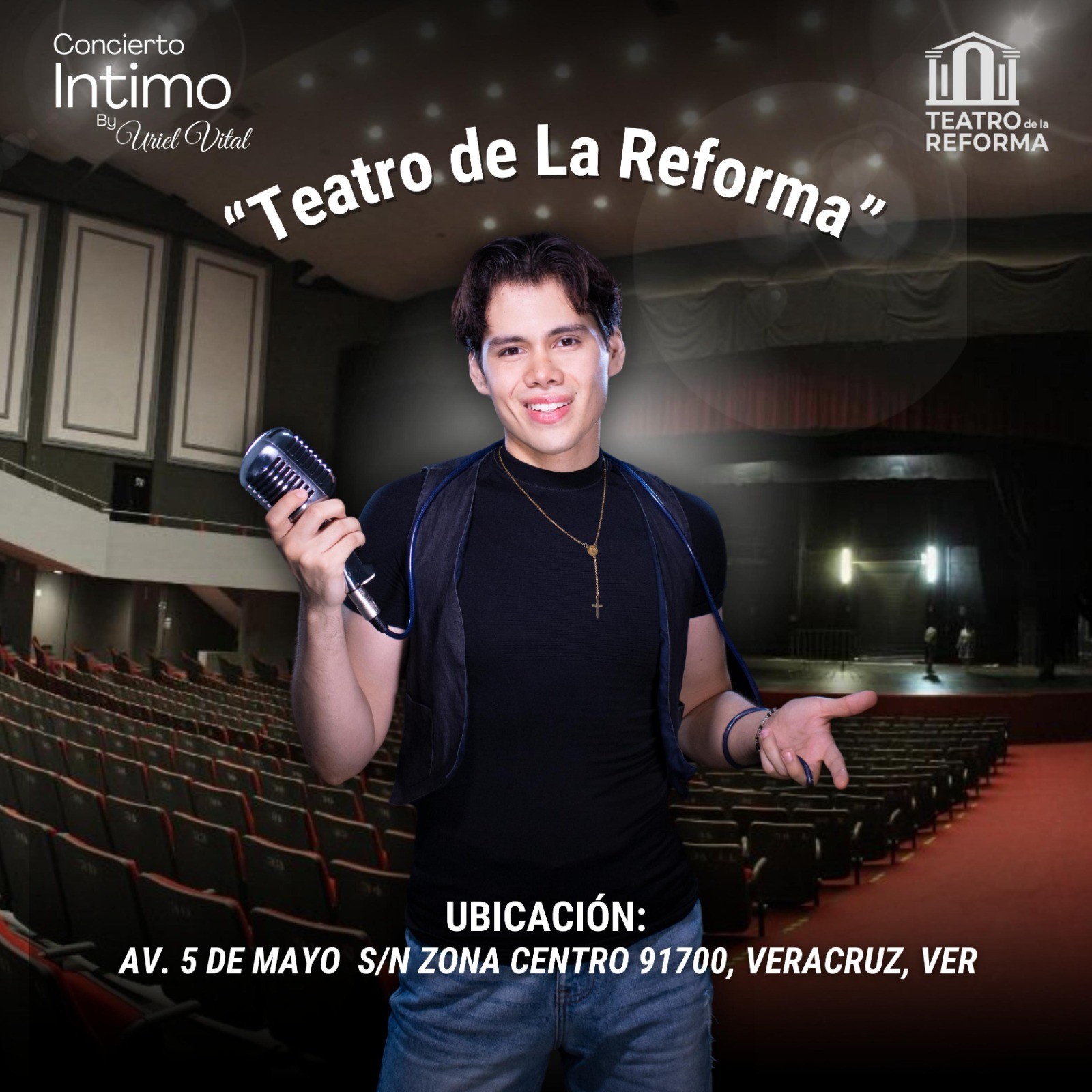 *Veracruz, Veracruz. Octubre 2024.-* El “Concierto Íntimo” del veracruzano Uriel Vital cambia de sede, ahora se realizará en el Teatro de la Reforma, el mismo día, sábado 12 de octubre a las 19:00 horas.